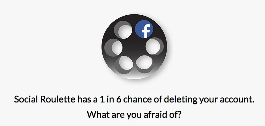 “Everyone thinks about deleting their account at some point, it’s a completely normal reaction to the overwhelming nature of digital culture. Is it time to consider a new development in your life? Are you looking for the opportunity to start fresh? Or are you just seeking cheap thrills at the expense of your social network? Maybe it’s time for you to play Social Roulette.”