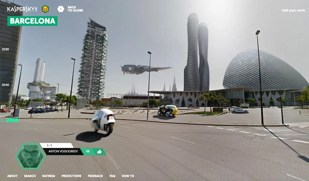 Think of it as Google Street View meets a time machine… Users can explore different cities around the world and see what they look like in 2030, 2040 and 2050. Predictions have been made by experts at Kaspersky, random website visitors and futurologists (I want that title).
