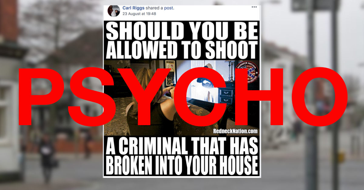 Just to establish my personal thoughts on the question posed here, I’m not questioning anybody’s right to defend themselves in the case of a home intrusion and the law supports any act of self defence in your home. But after a diet of domestic terror news, propaganda and general paranoia incited by a newfound plight of sheer selfishness and isolation (see: Brexit), it’s easy to see how this community has lost control.